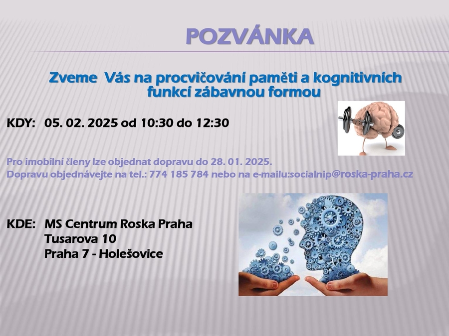 Dopravu objednávejte na tel.: 774 185 784 nebo na e-mailu:socialnip@roska-praha.cz