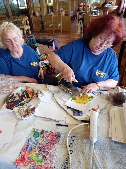 Na rekondici jsme odjížděli v neděli odpoledne. Počasí bylo téměř tropické. Teploty dosahovaly skoro 30 stupňů, někdy i více. Měli jsme jen lehčí cvičení na židlích, hráli jsme Bocciu, večer Bingo a hlavně jsme se věnovali ergoterapii. Dělali jsme enkaustiku. Obrázky se opravdu moc povedly. Občas jsme šli do vířivky a v té bylo opravdu příjemněji než venku. Rekondice byla opravdu povedená, jen nám trochu chyběly vycházky venku, které se nedaly uskutečňovat kvůli vedru. Na příští rekondici se moc těšíme!