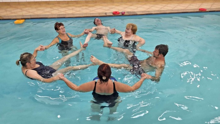 V pátek ráno jsme začali s Romanou K. tradiční rozcvičkou. Naše cvičitelky byly na školení, a tak nám předvedly spoustu nových cviků na procvičení těla. S některými cvičily i na židlích, nebo v bazénu. Ten byl tentokrát teplejší, tak jsme tam byli každý den, hráli jsme s míčem, cvičili, tančili i na akvabely došlo. Jana F. pro změnu přidala i cvičení v posilovně.
