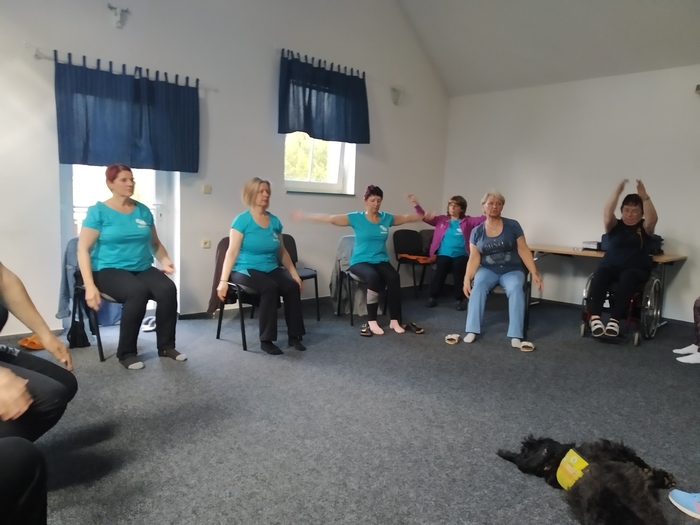 Tak jak to na rekondiční pobytu bývá, ráno začalo rozcvičkou, abychom rozhýbali svá těla. Dopoledne i odpoledne se cvičilo na židlích a na karimatkách. Někdy jsme využili pěkného počasí a zacvičili si i venku.