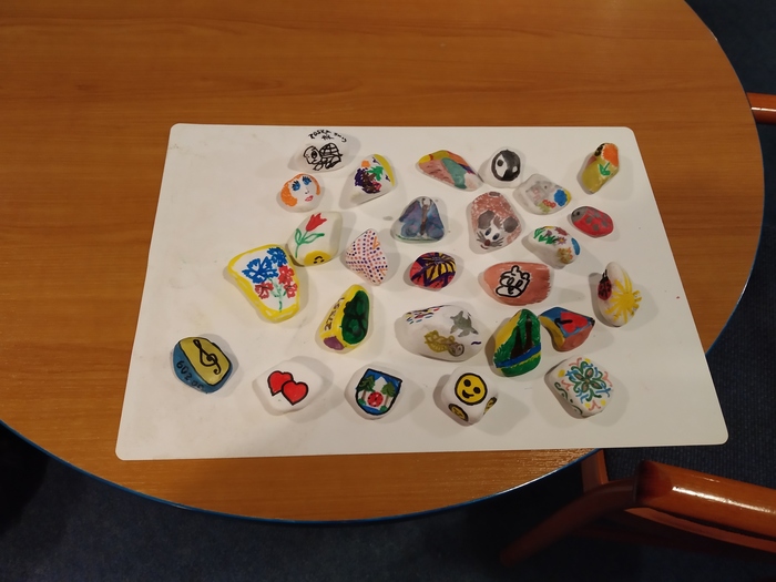 Pěkného počasí jsme využili k procházkám po okolí. Večer jsme měli pracovní terapii, kde jsme si namalovali kamínky, a také jsme se naučili drátovat.