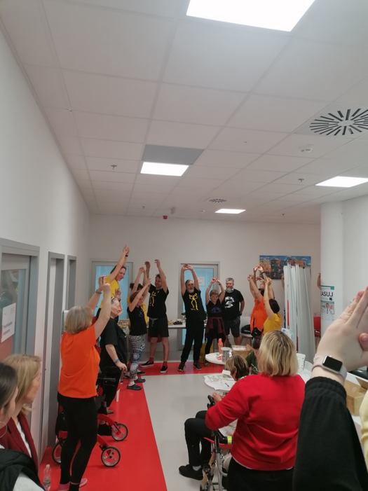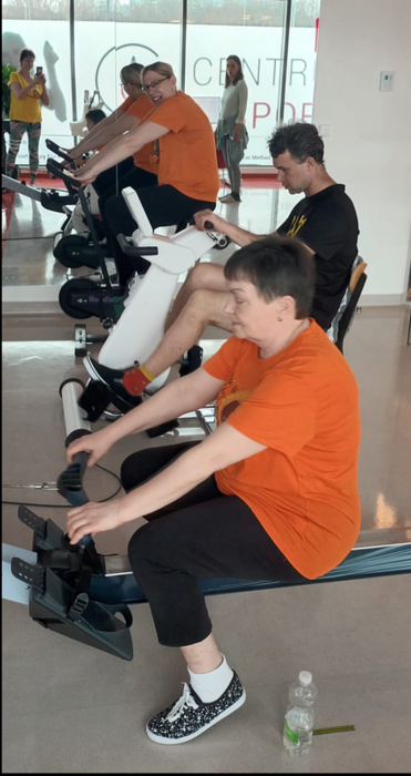 Brněnská Roska kromě svých vlastních členů hostila i kamarády z Rosek Kyjov, Vsetín i Brno-venkov.Dohromady se nás sešlo na padesát. Mezi námi se objevilo také několik nových tváří, které nalákaly naše plakáty v RS centru Brno Bohunice i v místě, kde se akce pořádala. Letos jsme totiž opustili dříve pronajímané prostory a uspořádali cvičební maraton v Centrurehabilitační a sportovní péče CAMPUS, což je profesionální rehabilitační pracoviště jak pro pacienty s výrazným pohybovým omezením, tak pro výkonnésportovce. A že to byl opravdový maratón, svědčí počet odcvičených jednotek, kterých bylo dohromady 112, což je více než 5 tisíc minut. Každý si mohl vybrat z bohaté nabídky –cvičení v závěsném systému redcord, na balónech, pro zdravá chodidla a nejpopulárnější byly robotické přístroje, které pomáhají s hybností rukou, současně trénují pozornost,nebo balanční plošina či veslování.