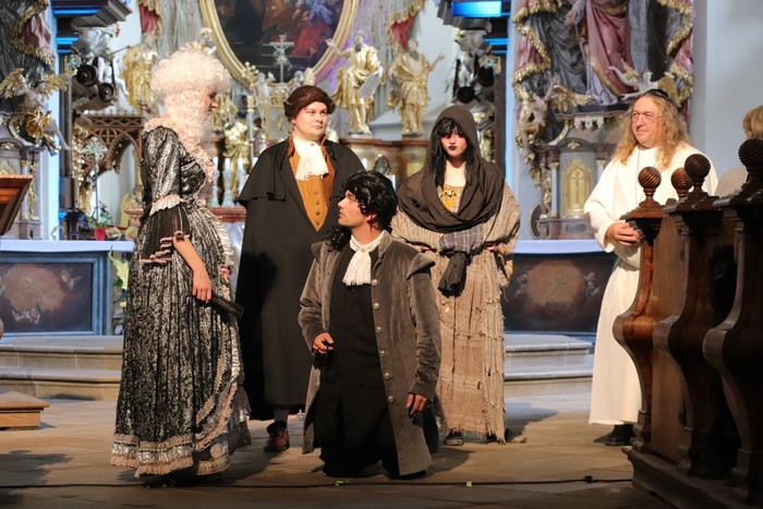 Příběh začíná rokem 1714, kdy Santini přichází do rozvalin zdejšího chrámu. My jsme se bavili zábavnou tvorbou a dozvěděli jsme se vše o Želivském klášteře i o J. B. Santinim.