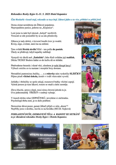 Rekondice Rosky Kyjov 8.-11. 5. 2025 Hotel Kopanice