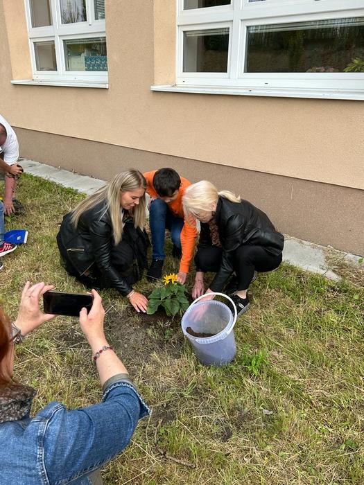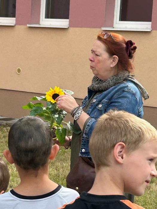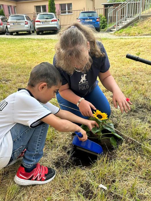 Počasí nám přálo a děti byly šikovné. Mimo to, že si zasadily krásně rozkvetlé slunečnice, se díky Ing. Kateřině Bémové dověděly něco málo o naší chorobě. Přišla nás podpořit i starostka města Jirkova paní Dana Havlátková Jurštaková.