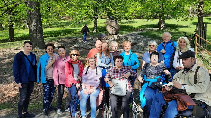 I přes počáteční nesnáze s autobusovou dopravou (oprava jediného příjezdového mostu), jsme se postupně scházeli ve venkovní kavárničce před vstupem do areálu Hukvaldské obory.